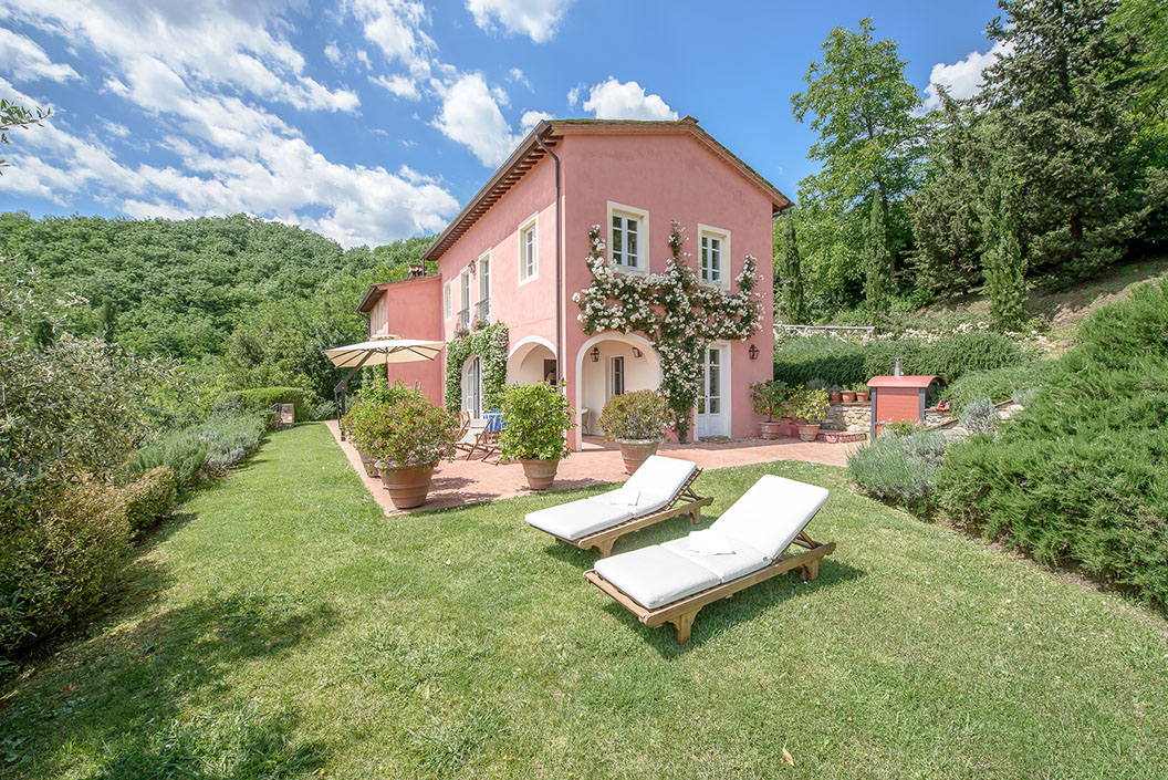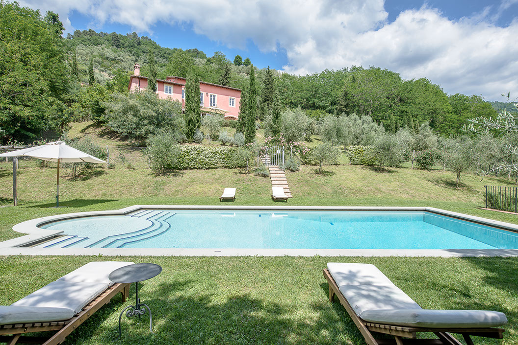 view of the Serchio Valley and surrounding mountains. The house is south facing with a large landscaped sun terrace looking