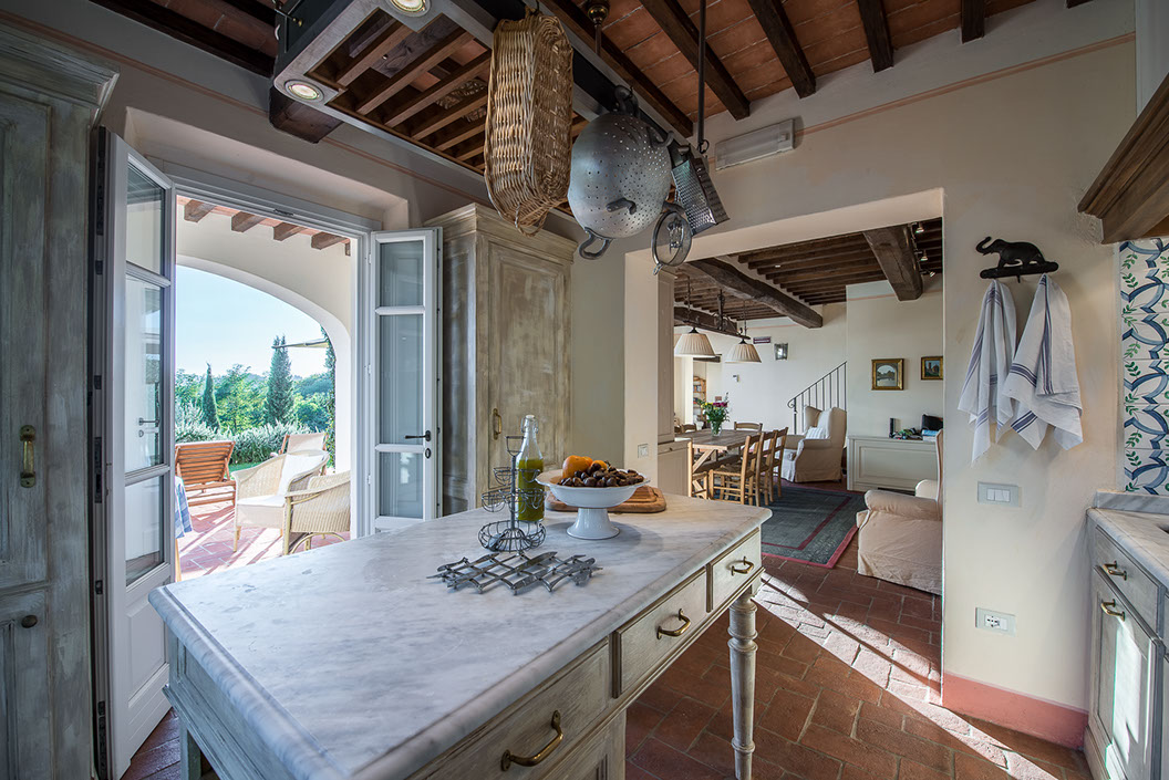 Attractive fully equipped kitchen designed by Barthel of Florence. Doors opening to a breakfast area for your morning cappuccino.